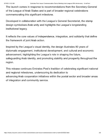 8/19/25, 9:52 AM Emirates Post Issues Commemorative Stamp Marking Arab Leagues 80th Anniversary - UrduPoint