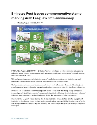 DUBAI, 18th August, 2025 (WAM) -- Emirates Post has unveiled a special commemorative stamp