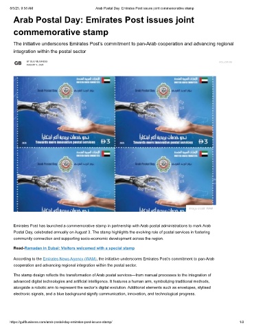 https://gulfbusiness.com/arab-postal-day-emirates-post-issues-stamp/ 1/2