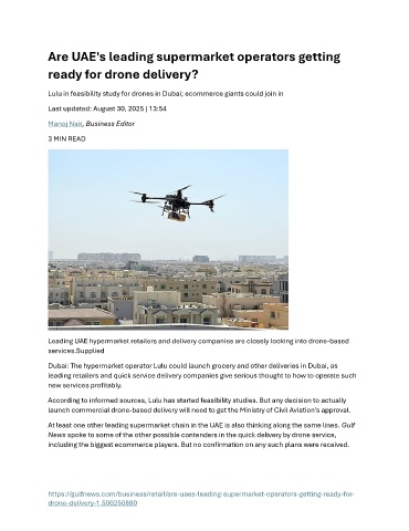 Leading UAE hypermarket retailers and delivery companies are closely looking into drone-based