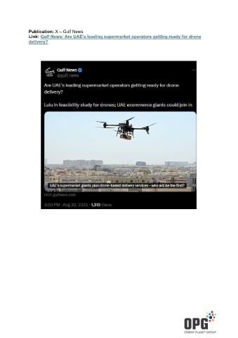Publication: X – Gulf News Link: Gulf News: Are UAE's leading supermarket operators getting ready for drone delivery?