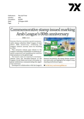 Publication: The Gulf Time Country: UAE Circulation: 60,000 Date: 19 August 2025 Page: 2