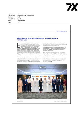 Publication: Logistics News Middle East Country: UAE Circulation: 5,230 Date: August 2025 Page: 13