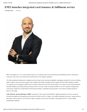 8/26/25, 9:53 AM EMX launches integrated card issuance & fulfilment service - Middle East News 247