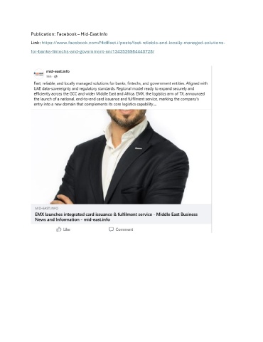 Publication: Facebook – Mid-East Info Link: https://www.facebook.com/MidEast.i/posts/fast-reliable-and-locally-managed-solutions- for-banks-fintechs-and-government-en/1343526984440728/