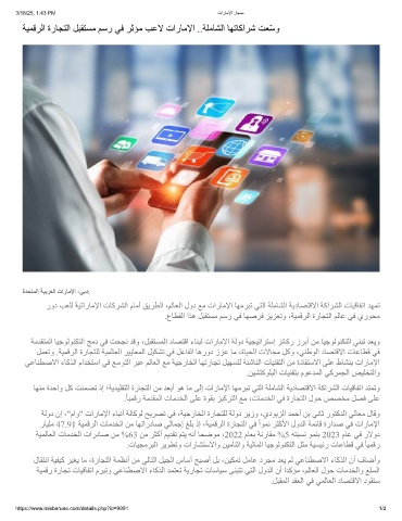 ﺔﯿﻤﻗﺮﻟا ةرﺎﺠﺘﻟا ﻞﺒﻘﺘﺴﻣ ﻢﺳر ﻲﻓ ﺮﺛﺆﻣ ﺐﻋﻻ تارﺎﻣﻹا ..ﺔﻠﻣﺎﺸﻟا ﺎﮭﺗﺎﻛاﺮﺷ ﺖﻌّﺳو