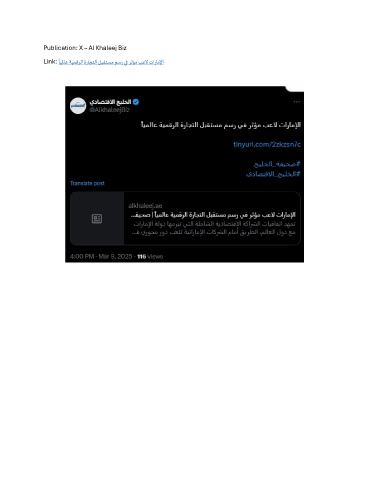 Publication: X – Al Khaleej Biz Link: ايلماع ةيمقرلا ةراجتلا لبقتسم مسر يف رثؤم بعلا تاراملإا