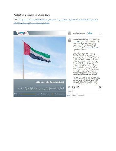 Publication: Instagram – Al Wahda News Link: ملاع يف يروحم رود بعلل ةيتاراملإا تاكرشلا مامأ قيرطلا ،ملاعلا لود عم تاراملإا# اهمربت يتلا ةلماشلا ةيداصتقلاا ةكارشلا تايقافتا دهمت .عاطقلا اذه لبقتسم مسر يف اهصرف زيزعتو ،ةيمقرلا_ةراجتلا#