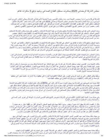 3/18/25, 12:08 PM مھﺎﻔﺗ تارﻛذﻣ 3 ﻊﯾﻗوﺗ دﮭﺷﯾو ﻲﻋﺎﻧﺻﻟا عﺎطﻘﻟا لﺑﻘﺗﺳﻣ فرﺷﺗﺳﯾ 2025 ﻲﻧﺎﺿﻣرﻟا ﺔﻗرﺎﺷﻟا سﻠﺟﻣ - Fana News