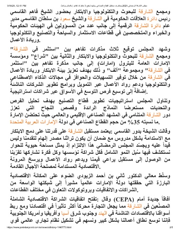 ﺔﺴﺳﺆﻣو "عاﺮﺷ" ﻦﯿﺑ ﺔﯿﻧﺎﺜﻟاو رﺎﻜﺘﺑﻻاو ﺎﯿﺟﻮﻟﻮﻨﻜﺘﻟاو ثﻮﺤﺒﻠﻟ ﺔﻗرﺎﺸﻟا ﻊﻤﺠﻣو