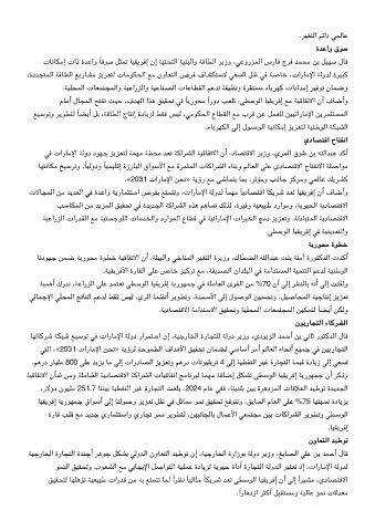 ،ةدﺪﺠﺘﻤﻟا ﺔﻗﺎﻄﻟا ﻊﻳرﺎﺸﻣ ﺰﻳﺰﻌﺘﻟ تﺎﻣﻮﺤﻟا ﻊﻣ نوﺎﻌﺘﻟا صﺮﻓ فﺎﺸﺘﺳﻻ ﻌﺴﻟا ﻞﻇ ﻓ ﺔﺻﺎﺧ ،تارﺎﻣﻹا ﺔﻟوﺪﻟ ةﺮﻴﺒﻛ