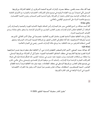 ﺎﻴﻘﻳﺮﻓإ ﻊﻣ ﺔﻛاﺮﺸﻟا ﺔﻴﻗﺎﻔﺗا نإ ،يﺰﻛﺮﻤﻟا ةﺪﺤﺘﻤﻟا ﺔﻴﺑﺮﻌﻟا تارﺎﻣﻹا فﺮﺼﻣ ﻆﻓﺎﺤﻣ ،ﻤﻌﻟﺎﺑ ﺪﻤﺤﻣ ﺪﻟﺎﺧ ﺪﻛأ ﺎﻤﻴﻓ