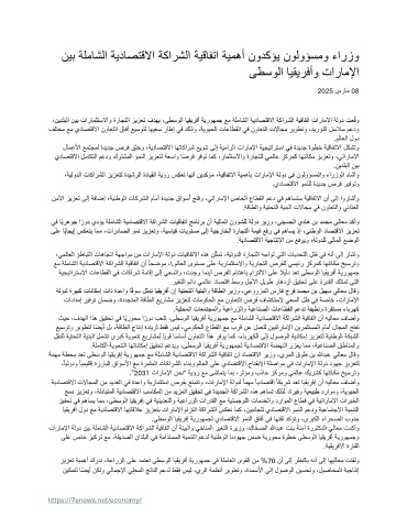 ، نيدلبلا نيب تارامثتسلااو ةراجتلا زيزعت فدهب ،ىطسولا ايقيرفأ ةيروهمج عم ةلماشلا ةيداصتقلاا ةكارشلا ةيقافتا تاراملإا ةلود تع ّ قو