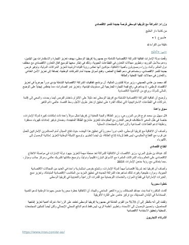 حاتفنلاا ةلصاوم يف تاراملإا ةلود دوهج زيزعتل ةمهم ةطحم دعت ةكارشلا ةيقافتلاا نأ ،داصتقلاا ريزو ،يرملا قوط نب اللهدبع دكأ