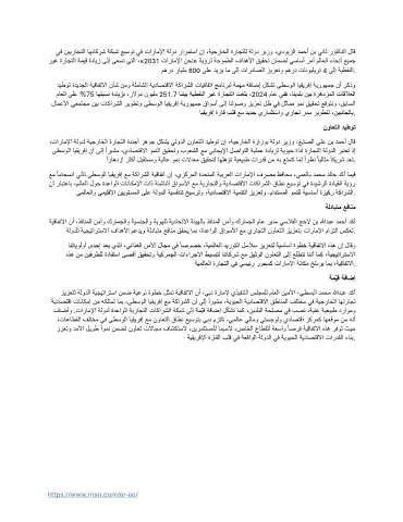 يف نييراجتلا اهئاكرش ةكبش عيسوت يف تاراملإا ةلود رارمتسا نإ ،ةيجراخلا ةراجتلل ةلود ريزو ،يدويزلا دمحأ نب يناث روتكدلا لاق