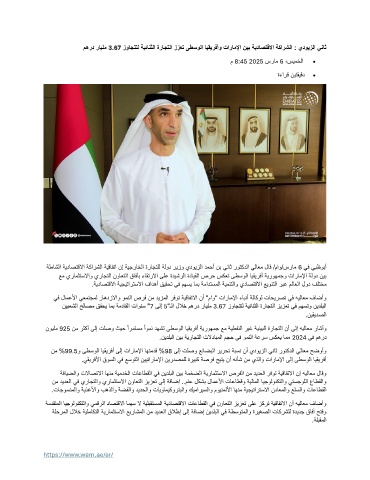 مهرد رايلم 3.67 زواجتتل ةيئانثلا ةراجتلا ززعت ىطسولا ايقيرفأو تاراملإا نيب ةيداصتقلاا ةكارشلا : يدويزلا يناث