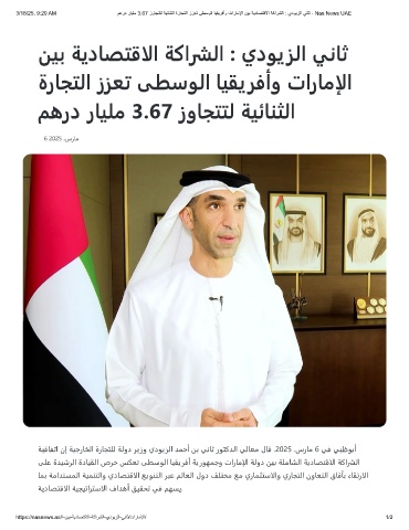 3/18/25, 9:20 AM مھرد رﺎﯾﻠﻣ 3.67 زوﺎﺟﺗﺗﻟ ﺔﯾﺋﺎﻧﺛﻟا ةرﺎﺟﺗﻟا ززﻌﺗ ﻰطﺳوﻟا ﺎﯾﻘﯾرﻓأو تارﺎﻣﻹا نﯾﺑ ﺔﯾدﺎﺻﺗﻗﻻا ﺔﻛارﺷﻟا : يدوﯾزﻟا ﻲﻧﺎﺛ - Nas News UAE