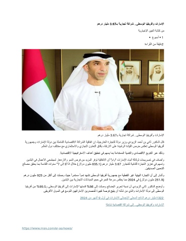 ةيروهمجو تاراملإا ةلود نيب ةلماشلا ةيداصتقلاا ةكارشلا ةيقافتا نإ ،ةيجراخلا ةراجتلل ةلود ريزو يدويزلا دمحأ نب يناث روتكدلا لاق