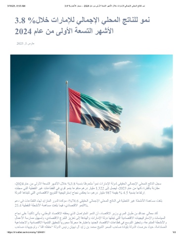 ،2024 مﺎﻋ ﻦﻣ ﻰﻟوﻷا ﺔﻌﺴﺘﻟا ﺮﮭﺷﻷا لﻼﺧ %3.8 ﺔﺒﺴﻨﺑ ﺎظﻮﺤﻠﻣ ًاﻮﻤﻧ تارﺎﻣﻹا ﺔﻟوﺪﻟ ﻲﻘﯿﻘﺤﻟا ﻲﻟﺎﻤﺟﻹا ﻲﻠﺤﻤﻟا ﺞﺗﺎﻨﻟا ﻞﺠﺳ