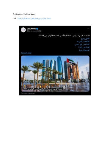 Publication: X – East News Link: 2024نمىلولأاةعستلارهشلأاب%3.8ـبومنيتاراملإاداصتقا
