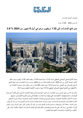 لﻼﺧ ،ﻢﻫرد نﻮﻴﻠﻳﺮﺗ 1,32 ﺖﻐﻠﺑ ﺔﻤﻴﻘﺑو ،%3.8 ﺔﺒﺴﻨﺑ ًاﻮﻤﻧ تارﺎﻣﻹا ﺔﻟوﺪﻟ ﻘﻴﻘﺤﻟا ﻟﺎﻤﺟﻹا ﻠﺤﻤﻟا ﺞﺗﺎﻨﻟا ﻞﺠﺳ