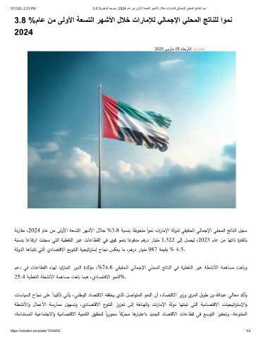 3/17/25, 2:13 PM 3.8 %نطوﻟا ةدﯾرﺟ › 2024 مﺎﻋ نﻣ ﻰﻟوﻷا ﺔﻌﺳﺗﻟا رﮭﺷﻷا لﻼﺧ تارﺎﻣﻺﻟ ﻲﻟﺎﻣﺟﻹا ﻲﻠﺣﻣﻟا ﺞﺗﺎﻧﻠﻟ اوﻣﻧ