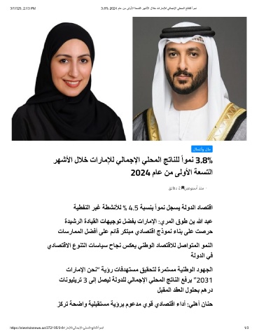 3/17/25, 2:13 PM 3.8% 2024 مﺎﻋ نﻣ ﻰﻟوﻷا ﺔﻌﺳﺗﻟا رﮭﺷﻷا لﻼﺧ تارﺎﻣﻺﻟ ﻲﻟﺎﻣﺟﻹا ﻲﻠﺣﻣﻟا ﺞﺗﺎﻧﻠﻟ ًاوﻣﻧ