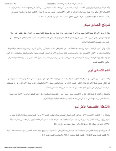 ﺔﯾﻠﺑﻘﺗﺳﻣﻟا ﺔﯾؤرﻟاو ،تارﺎﻣﻹا ﺔﻟودﻟ يوﻘﻟا يدﺎﺻﺗﻗﻻا ءادﻷا سﻛﻌﯾ ،ﻲﺿﺎﻣﻟا مﺎﻌﻟا نﻣ ﻰﻟوﻷا ﺔﻌﺳﺗﻟا رﮭﺷﻷا لﻼﺧ تارﺎﻣﻹا ﺔﻟودﻟ ﻲﻠﺣﻣﻟا ﺞﺗﺎﻧﻟا وﻣﻧ