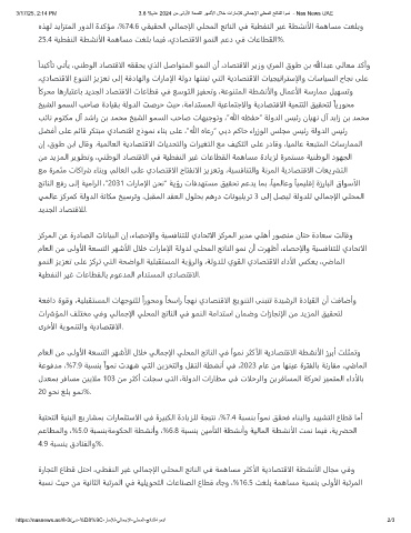 25.4 ﺔﻴﻄﻔﻨﻟا ﺔﻄﺸﻧألا ﺔﻤﻫﺎﺴﻣ ﺖﻐﻠﺑ ﺎﻤﻴﻓ ،يدﺎﺼﺘﻗالا ﻮﻤﻨﻟا ﻢﻋد ﻲﻓ تﺎﻋﺎﻄﻘﻟا%.