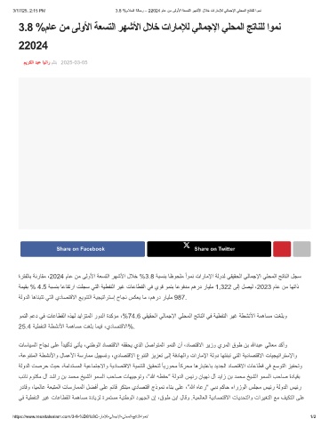 3/17/25, 2:15 PM 3.8 %مﻼﺳﻟا ﺔﻟﺎﺳر – 22024 مﺎﻋ نﻣ ﻰﻟوﻷا ﺔﻌﺳﺗﻟا رﮭﺷﻷا لﻼﺧ تارﺎﻣﻺﻟ ﻲﻟﺎﻣﺟﻹا ﻲﻠﺣﻣﻟا ﺞﺗﺎﻧﻠﻟ اوﻣﻧ