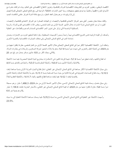لﺻﯾﻟ ﺔﻟودﻠﻟ ﻲﻟﺎﻣﺟﻹا ﻲﻠﺣﻣﻟا ﺞﺗﺎﻧﻟا ﻊﻓر ﻰﻟإ ﺔﯾﻣارﻟا ،″2031 تارﺎﻣﻹا نﺣﻧ“ ﺔﯾؤر تﺎﻓدﮭﺗﺳﻣ ﻖﯾﻘﺣﺗ مﻋدﯾ ﺎﻣﺑ ،ً ﺎﯾﻣﻟﺎﻋو ً ﺎﯾﻣﯾﻠﻗإ ةزرﺎﺑﻟا قاوﺳﻷا