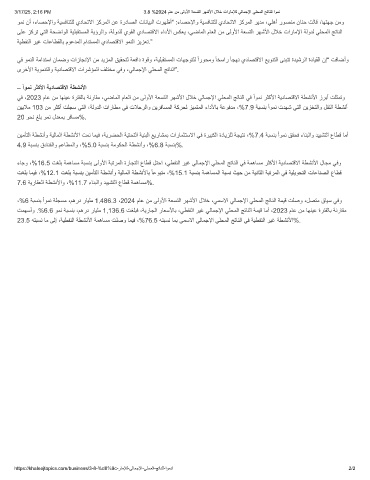 3/17/25, 2:16 PM 3.8 %2024 مﺎﻋ نﻣ ﻰﻟوﻷا ﺔﻌﺳﺗﻟا رﮭﺷﻷا لﻼﺧ تارﺎﻣﻺﻟ ﻲﻟﺎﻣﺟﻹا ﻲﻠﺣﻣﻟا ﺞﺗﺎﻧﻠﻟ اوﻣﻧ