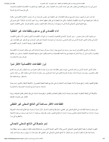 ﺖﻐﻠﺑ ﻮﻤﻧ ﺔﺒﺴﻨﺑ ،ﻢھرد نﻮﯿﻠﯾﺮﺗ 1.136 ﻞﺠﺳ ﺪﻘﻓ ،ﻲﻄﻔﻨﻟا ﺮﯿﻏ ﻲﻟﺎﻤﺟﻹا ﻲﻠﺤﻤﻟا ﺞﺗﺎﻨﻟا ﺎﻣأ .2023 مﺎﻋ ﻦﻣ ﺎﮭﺗاذ ةﺮﺘﻔﻟﺎﺑ ﺔﻧرﺎﻘﻣ %6 ﺔﺒﺴﻨﺑ