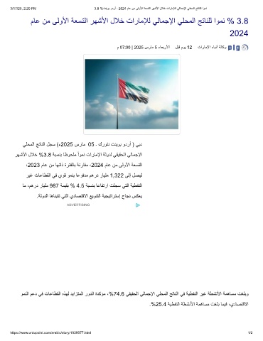 3/17/25, 2:20 PM 3.8 %تﻧﯾوﺑ ودرأ - 2024 مﺎﻋ نﻣ ﻰﻟوﻷا ﺔﻌﺳﺗﻟا رﮭﺷﻷا لﻼﺧ تارﺎﻣﻺﻟ ﻲﻟﺎﻣﺟﻹا ﻲﻠﺣﻣﻟا ﺞﺗﺎﻧﻠﻟ اوﻣﻧ
