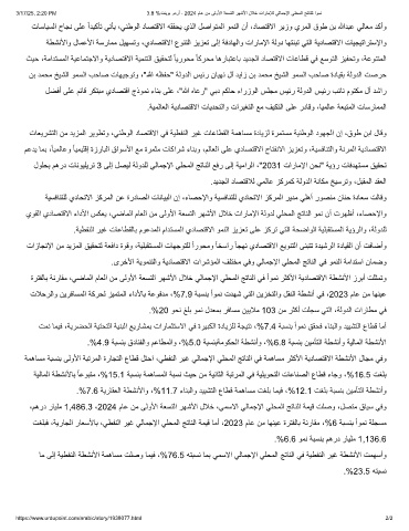 3/17/25, 2:20 PM 3.8 %تﻧﯾوﺑ ودرأ - 2024 مﺎﻋ نﻣ ﻰﻟوﻷا ﺔﻌﺳﺗﻟا رﮭﺷﻷا لﻼﺧ تارﺎﻣﻺﻟ ﻲﻟﺎﻣﺟﻹا ﻲﻠﺣﻣﻟا ﺞﺗﺎﻧﻠﻟ اوﻣﻧ