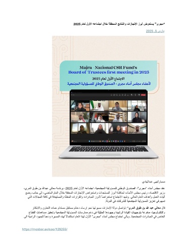 ،يرملا قوط نب اللهدبع يلاعم ةسائرب ، 2025 ماعل لولأا هعامتجا ،ةيعمتجملا ةيلوؤسملل ينطولا قودنصلا ،”ىرجم“ ءانمأ سلجم دقع