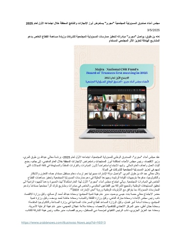2025 ماعل لولأا هعامتجا للاخ ةققحملا جئاتنلاو تازاجنلإا زربأ ضرعتسي "ىرجم" ةيعمتجملا ةيلوؤسملا قودنص ءانمأ سلجم