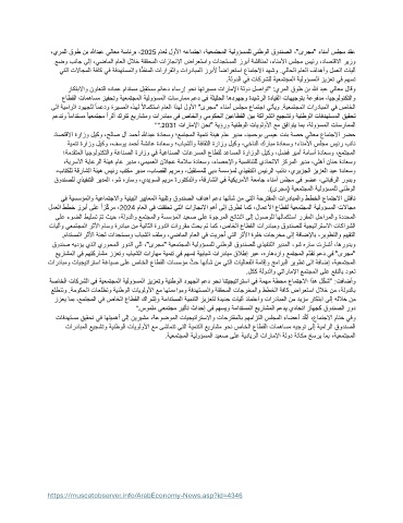 ،يرملا قوط نب اللهدبع يلاعم ةسائرب ، 2025 ماعل لولأا هعامتجا ،ةيعمتجملا ةيلوؤسملل ينطولا قودنصلا ،"ىرجم" ءانمأ سلجم دقع