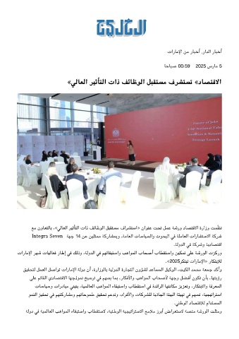 ﻊﻣ نوﺎﻌﺘﻟﺎﺑ ،«ﻟﺎﻌﻟا ﺮﻴﺛﺄﺘﻟا تاذ ﻒﺋﺎﻇﻮﻟا ﻞﺒﻘﺘﺴﻣ فاﺮﺸﺘﺳا» ناﻮﻨﻋ ﺖﺤﺗ ﻞﻤﻋ ﺔﺷرو دﺎﺼﺘﻗﻻا ةرازو ﺖﻤّﻈﻧ