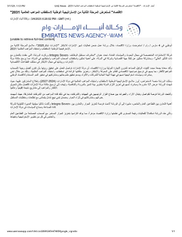 3/17/25, 1:53 PM UAE News - 2031 ﺔﯾﻣﻟﺎﻌﻟا بھاوﻣﻟا بﺎطﻘﺗﺳﻻ ﺔﯾﻧطوﻟا ﺔﯾﺟﯾﺗارﺗﺳﻹا نﻣ ﺔﯾﻧﺎﺛﻟا ﺔﻠﺣرﻣﻟا ضرﻌﺗﺳﺗ "دﺎﺻﺗﻗﻻا" - تارﺎﻣﻹا رﺎﺑﺧأ
