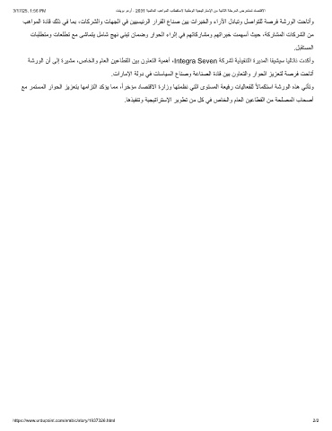 ﻊﻣ رﻣﺗﺳﻣﻟا راوﺣﻟا زﯾزﻌﺗﺑ ﺎﮭﻣازﺗﻟا دﻛؤﯾ ﺎﻣﻣ ،ًارﺧؤﻣ دﺎﺻﺗﻗﻻا ةرازو ﺎﮭﺗﻣظﻧ ﻲﺗﻟا ىوﺗﺳﻣﻟا ﺔﻌﯾﻓر تﺎﯾﻟﺎﻌﻔﻠﻟ ًﻻﺎﻣﻛﺗﺳا ﺔﺷروﻟا هذھ ﻲﺗﺄﺗو