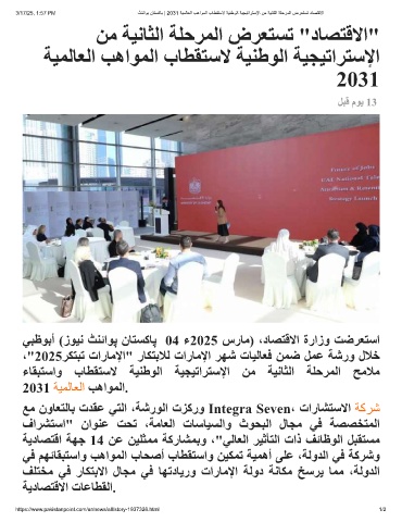 3/17/25, 1:57 PM ٹﻧﺋاوﺑ نﺎﺗﺳﮐﺎﺑ | 2031 ﺔﯾﻣﻟﺎﻌﻟا بھاوﻣﻟا بﺎطﻘﺗﺳﻻ ﺔﯾﻧطوﻟا ﺔﯾﺟﯾﺗارﺗﺳﻹا نﻣ ﺔﯾﻧﺎﺛﻟا ﺔﻠﺣرﻣﻟا ضرﻌﺗﺳﺗ دﺎﺻﺗﻗﻻا