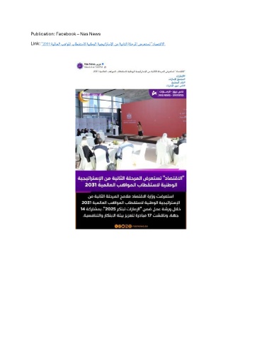 Publication: Facebook – Nas News Link: "2031 ةيلماعلا بهاولما باطقتسلا ةينطولا ةيجيتارتسلإا نم ةيناثلا ةلحرلما ضرعتست "داصتقلاا.