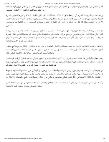 ﺔﻤﻗ ﺲﯿﺋر ﺔﯿﺟرﺎﺨﻟا ةرﺎﺠﺘﻠﻟ ﺔﻟودﺮﯾزو يدﻮﯾﺰﻟا ﺪﻤﺣأ ﻦﺑ ﻲﻧﺎﺛ رﻮﺘﻛﺪﻟا ﻲﻟﺎﻌﻣ لﺎﻗو "AIM" ﻚﻠﺘﻤﺗ ﺎﯿﺟﻮﻟﻮﻨﻜﺘﻟا نإ ،رﺎﻤﺜﺘﺳﻼﻟ