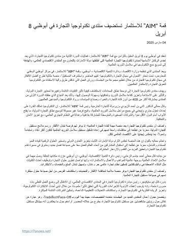 دعي يذلا ،ةراجتلا ايجولونكت ىدتنم نم ةيناثلا ةرودلا تايلاعف ،رامثتسلال ” AIM “ ةمق عم نمازتلاب لبقملا ليربأ 8 موي يبظوبأ يف دقعنت