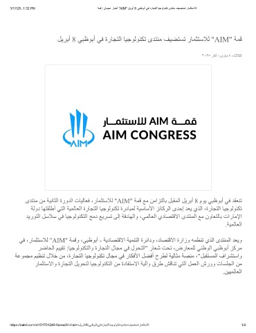3/17/25, 1:32 PM ﺔﻣﻗ | نﺎﻣﺟﻋ رﺎﺑﺧأ "AIM" لﯾرﺑأ 8 ﻲﺑظوﺑأ ﻲﻓ ةرﺎﺟﺗﻟا ﺎﯾﺟوﻟوﻧﻛﺗ ىدﺗﻧﻣ فﯾﺿﺗﺳﺗ رﺎﻣﺛﺗﺳﻼﻟ