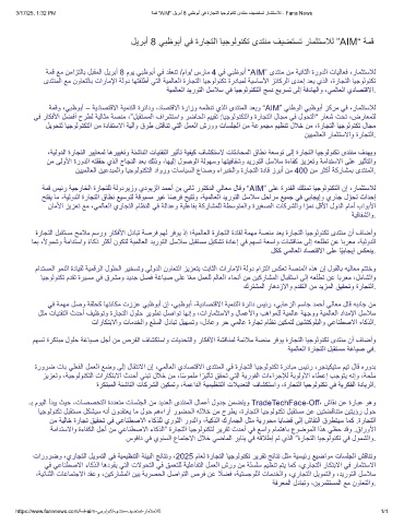 3/17/25, 1:32 PM ﺔﻣﻗ "AIM" لﯾرﺑأ 8 ﻲﺑظوﺑأ ﻲﻓ ةرﺎﺟﺗﻟا ﺎﯾﺟوﻟوﻧﻛﺗ ىدﺗﻧﻣ فﯾﺿﺗﺳﺗ رﺎﻣﺛﺗﺳﻼﻟ - Fana News