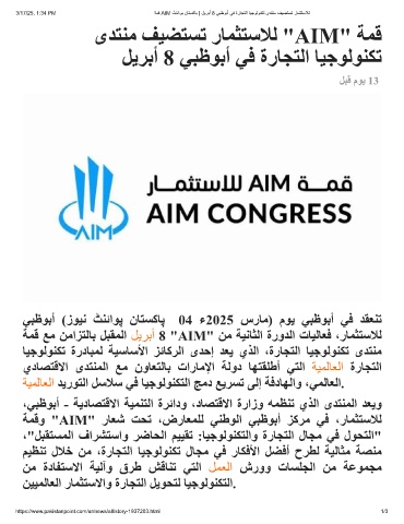 3/17/25, 1:34 PM ﺔﻣﻗ AIM ٹﻧﺋاوﺑ نﺎﺗﺳﮐﺎﺑ | لﯾرﺑأ 8 ﻲﺑظوﺑأ ﻲﻓ ةرﺎﺟﺗﻟا ﺎﯾﺟوﻟوﻧﻛﺗ ىدﺗﻧﻣ فﯾﺿﺗﺳﺗ رﺎﻣﺛﺗﺳﻼﻟ