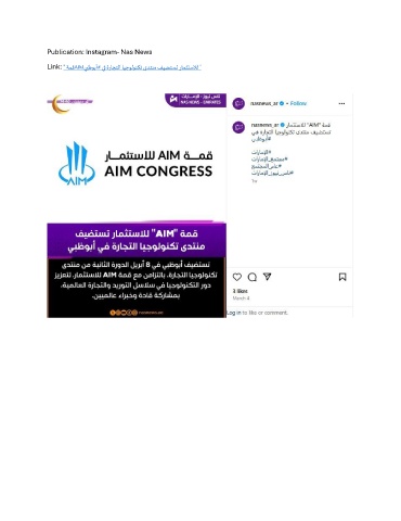 Publication: Instagram- Nas News Link: " ةمقAIM يبظوبأ# يف ةراجتلا ايجولونكت ىدتنم فيضتست رامثتسلال "