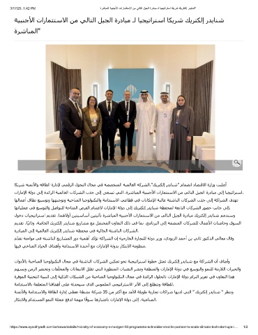 ﺎﻜﻳﺮﺷ ﺔﺘﻤﺗﻷاو ﺔﻗﺎﻄﻟا ةرادﻹ ﻲﻤﻗﺮﻟا لﻮﺤﺘﻟا لﺎﺠﻣ ﻲﻓ ﺔﺼﺼﺨﺘﻤﻟا ﺔﯿﻤﻟﺎﻌﻟا ﺔﻛﺮﺸﻟا،"ﻚﻳﺮﺘﻜﻟإ رﺪﻳﺎﻨﺷ" مﺎﻤﻀﻧا دﺎﺼﺘﻗﻻا ةرازو ﺖﻨﻠﻋأ